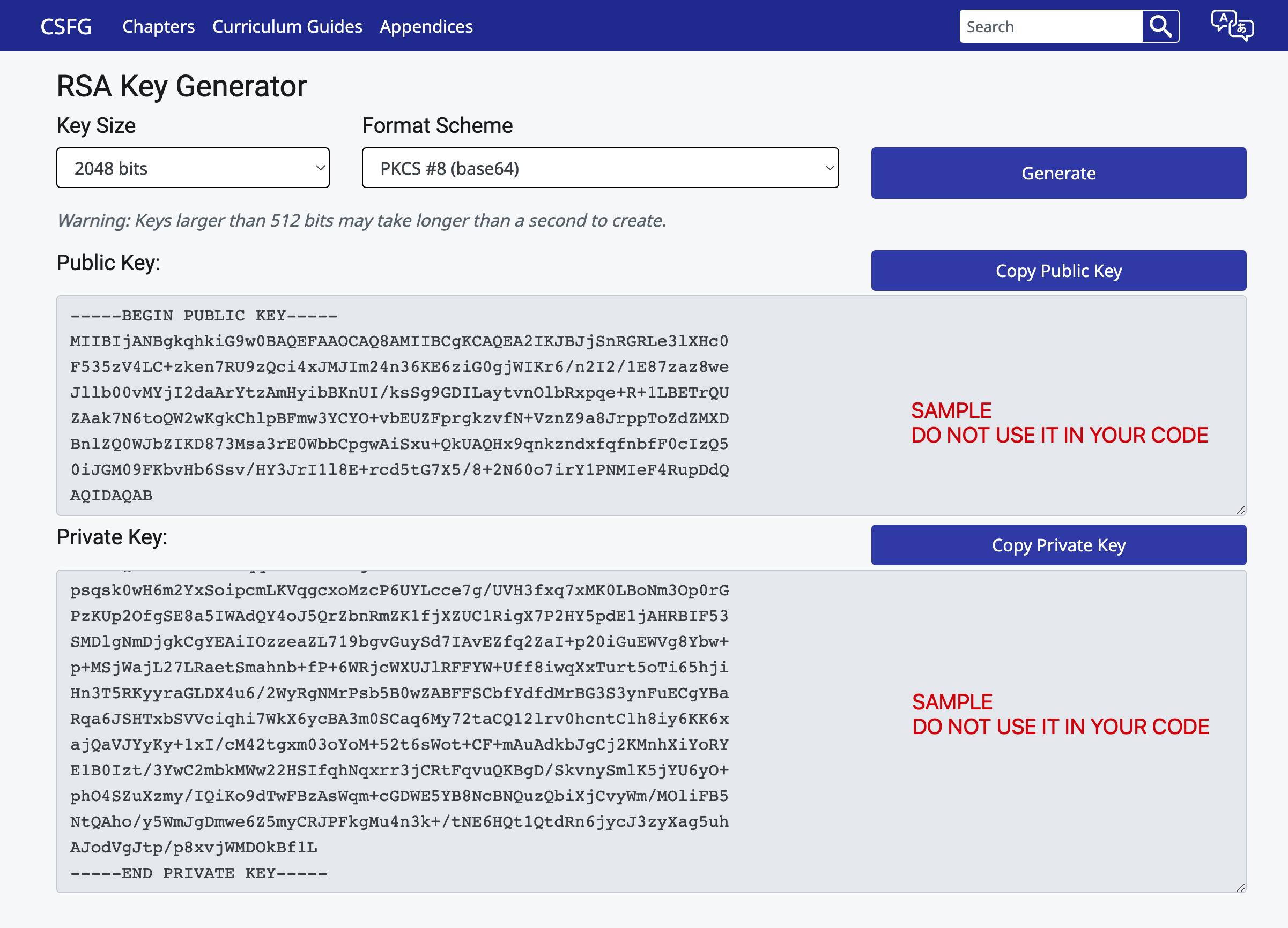 ### 使用 CSFG RSA Key Generator 生成密钥对